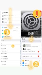 - 自分の名前(Apple ID)をタップ