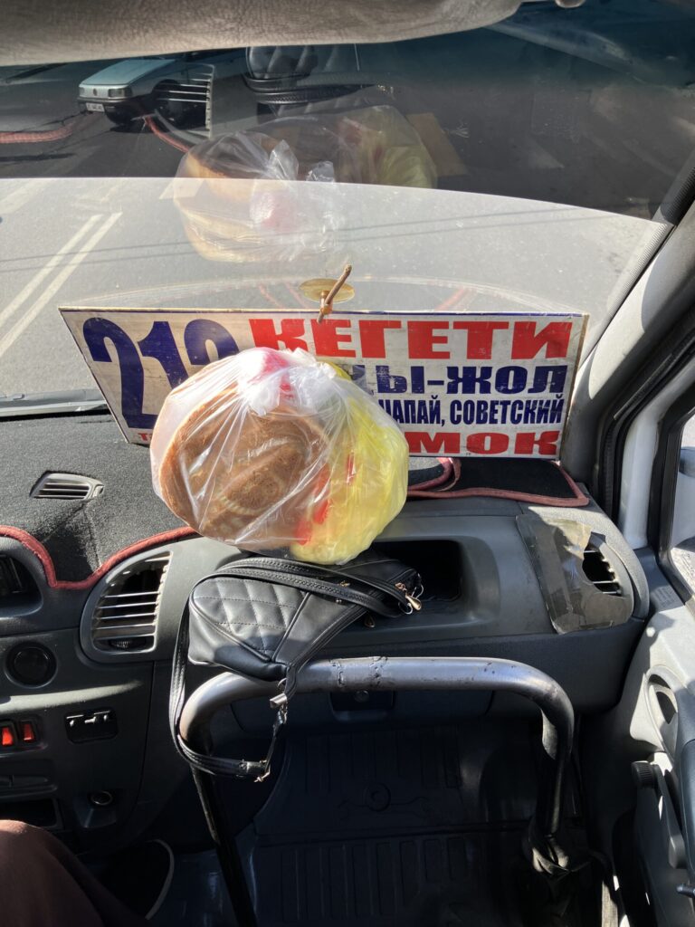 せかせかと10分歩いたところで、後ろからマルシュの気配が。振り返ると212番だ!!手を挙げるとちゃんと止まってくれた。料金は50ソム。表を指差して教えてくれた。