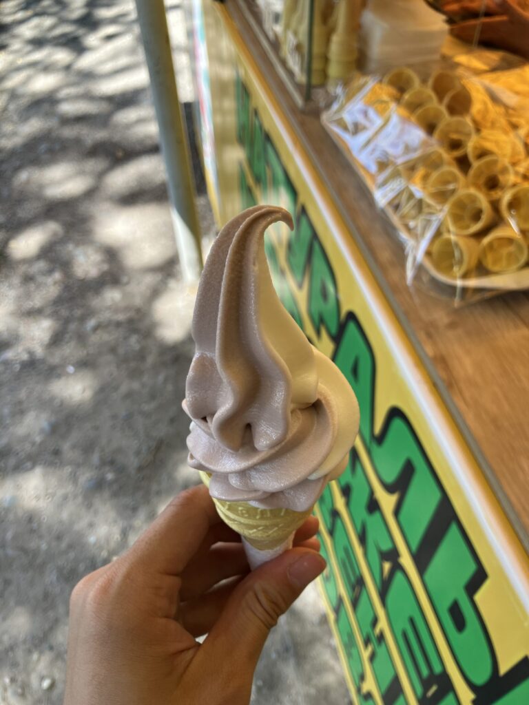 キルギスの人は平日の昼間から散髪する暇があるのかな?と少し不安な気持ちになる。アイスは40ソム。ココアとバニラのハーフがデフォルトのように出てきた。