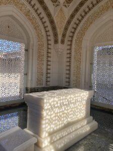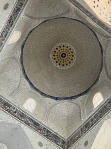 向かいの Hazrat-i Daniyor Maqbarasi – 聖ダニエル霊廟 へ。7:00OPENと書いてあったが、警備員の方に賄賂を要求されたので(たぶん)、妥当な額を渡して、入らせてもらった。とても親切に簡単なガイドまでしてくれた。こちらも貸し切りだったので、ゆっくりとした時間を過ごすことができた。