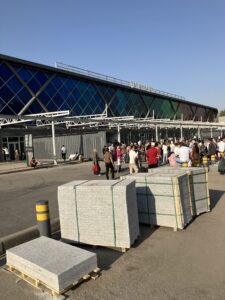 空港のバス停で降りて、5分ほど歩くと新ターミナルがある。案内表示、アナウンスはすべてタジク語またはロシア語。国際空港なのに、これは厳しい洗礼。