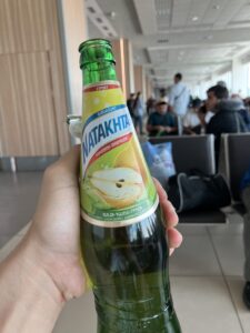 途中キルギスで国民的飲料スタンドに立ち寄る。ユリアさんが奢ってくれるそう。